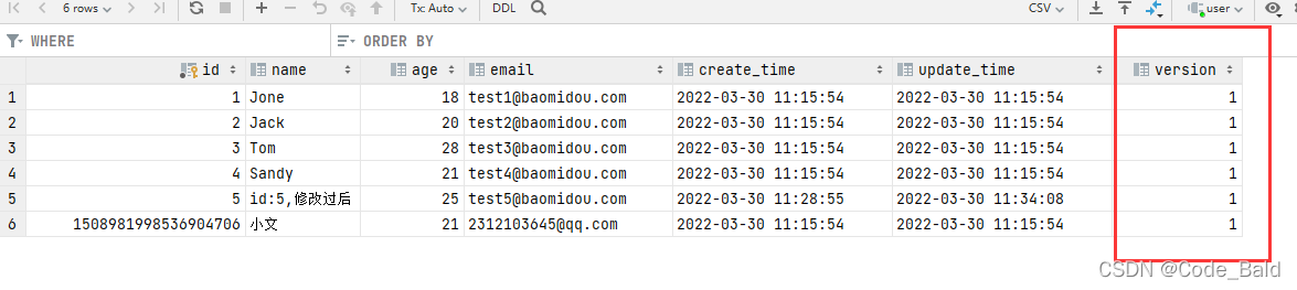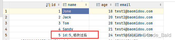 (1, 'Jone', 18, 'test1@baomidou.com'),