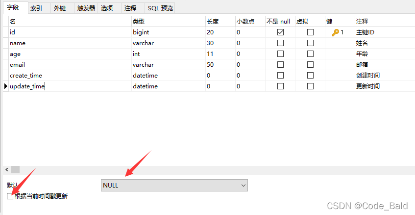 age INT(11) NULL DEFAULT NULL COMMENT '年龄',
