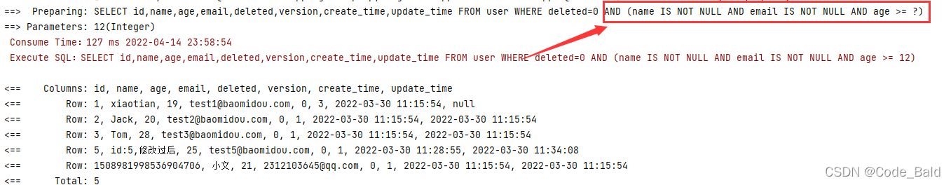 1、查询name、邮箱不为空且年龄大于等于20的用户