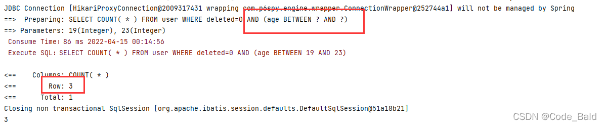 Long count = userMapper.selectCount(wrapper);//查询结果数