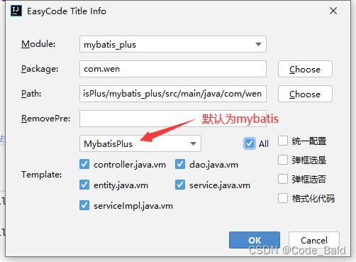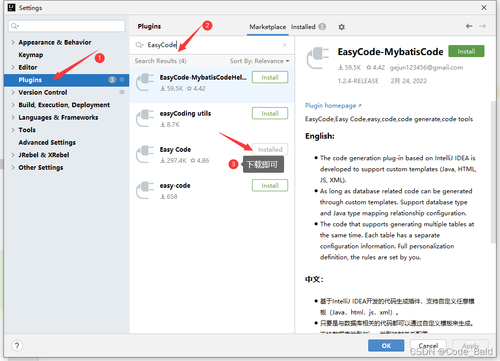 MybatisPlus看官方文档即可,这里讲一个Idea插件Easy Code代码生成器
