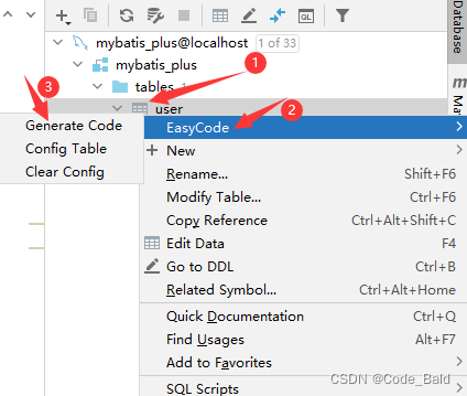 在对应的字段上右键,就可以看到多出一个EasyCode,点击然后选择生成